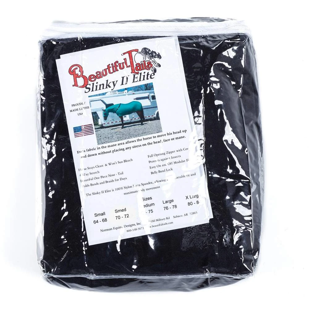 Made of heavy weight, 4/way stratch Lycra Spandex. Foremost in hair coat management that fits like a second skin protecting hair coat from head to tail. Keeps horse clean and provides protection from insects & sun bleaching, and holds braids & bands in place. Zips open so nothing goes over the head w/ a covered zipper and belly wrap and rear leg straps that keep it from shiffting. Machine wash and dry in minutes.
