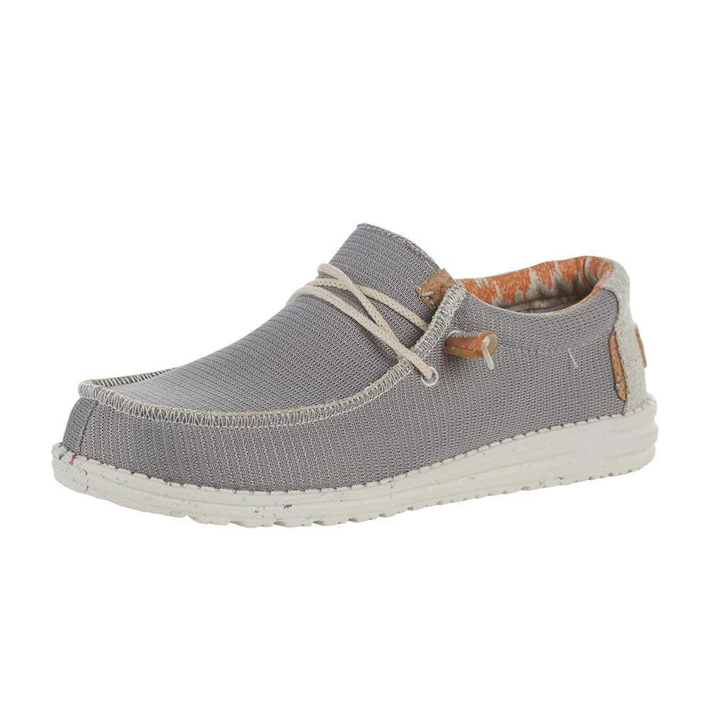 These Hey Dude Wally Eco Sox collection is a classic moccasin constructed knit upper with hemp reinforcement at the heel. They are easy-on, easy-wash, air dry. the ultralight outsole along with cotton laces and cushioned ankle are always a feel-good-wear. Get your Wally Eco Sox today. 112470710