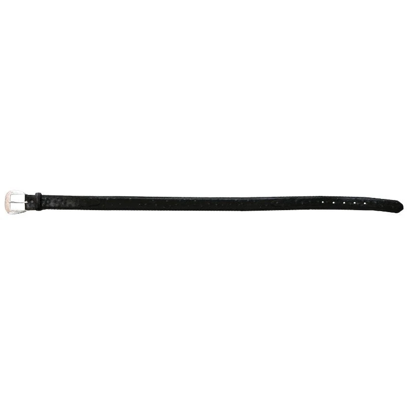 This black ostrich belt from Tony Lama features a silver buckle, it is leather, and has a leather keeper. This is a great belt for the man in your life.