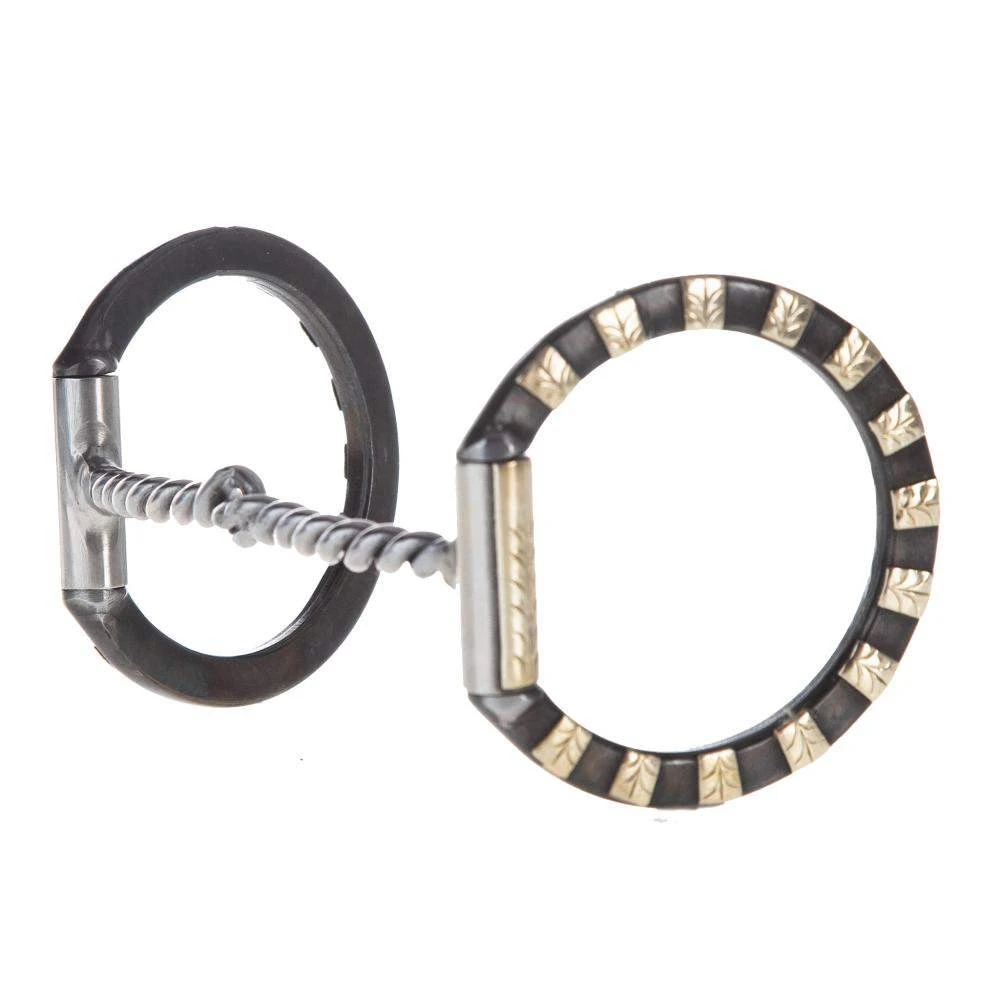 This NRS Slow Square Twist Engraved D Ring Snaffle Bit that is a great bit for starting colts. The direct cues of a two piece d-ring help a colt learn pressure and release as well as lateral movement. This is a great first ride bit before moving up to a leverage bit.